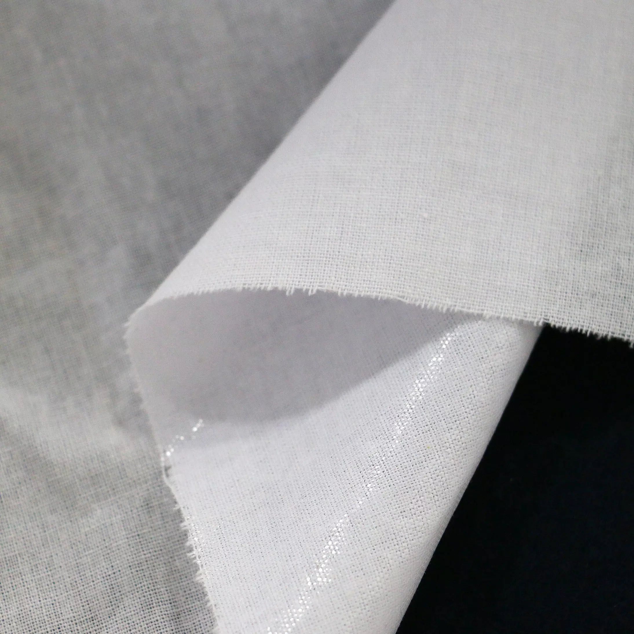100% Cotton Heavy Weight Fusible Interfacing / Interlining 60″ WidernFusible interfacing/interlining in 100% cotton heavyweight woven fabric (60″ width), available in snow white or black.rnThe interlining fabric is the behind the scenes workhorse of the garment industry: it adds body, structure, durability, and volume to any type of garment, from the lightest silk dresses to bulky coats and outerwear, applied to the inside of the garment. Our interfacing fabrics are fusible and applied using an iron.rnWeight & materials:rnrn4.43 oz per square yardrn140-145 GSMrn100% cottonrnAdhesivernHDPErnSold in 10 & 100 (1 roll) yards.