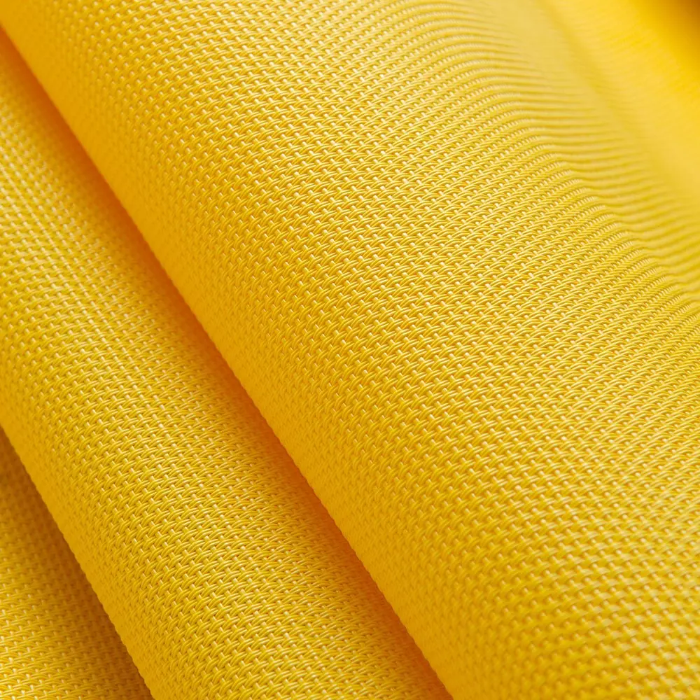 60″ Wide Lemon Yellow Vinyl Mesh FabricrnVinyl Mesh Lemon Yellow 60″ Fabric is a tightly woven 70% PVC & 30% vinyl-coated woven polyester mesh. This designer mesh fabric has excellent dimensional stability and flexibility in all climates, making it the perfect choice for sunshades and other outdoor applications. This mesh provides good privacy and good interior light as a window covering. This Mesh provides a 90–95% shade factor and can be used to extend the life of vinyl windows.rnMesh fabric is ideal for patio furniture, sling chairs, roller shades, outdoor cushion covers, boat cockpit cushions, boat enclosures, structural awnings, RV and yacht window covers, place mats, and water-draining bags. Use the material on the bottom of outdoor cushions so that they can drain dry. Lemon Yellow is also easy to cut, sew and clean! rnSPECIFICATIONS:rnrnrnrnrnrnrnWidth: 60″Weight: 16 oz. per square yardConstruction: 42x12Shade Factor: 90-95%Openness Factor: 7.5%Sale Unit: Sold per linear yard.Yards By Roll: 77