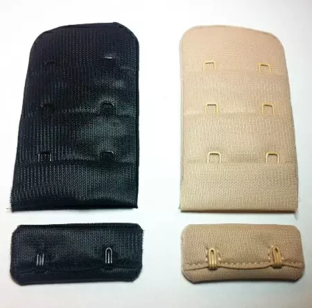 Bra Back Closure Hook And Eye 1-1/2″ WidernBra back closure, hook & eye 1-1/2″ width. Padded foam lycra. 3/4″ spacing between eyes, three rows, 2 skips. Available in black or nude. Three sets.