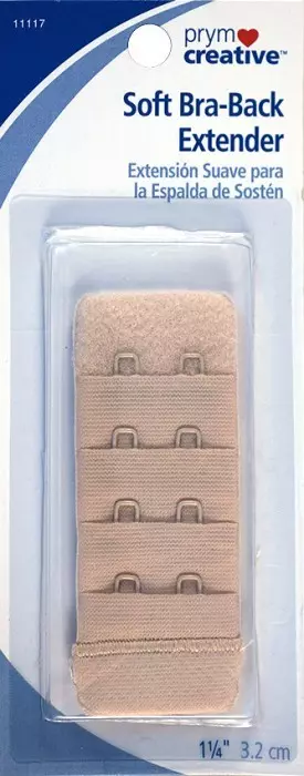 Bra Back Extender 2 Pack – Dritz/PrymrnSoft bra back extender by Dritz/Prym. Soft back provides comfort and eliminates irritation. Insert extender between bra hook and eye to add between 1″ and 3″ to bra back. Pack of two.rnrntWe carry this product in two sizes: 1-1/4″ width and 2-1/4″ width. Flesh tone. Choose options in the pull-down menu.