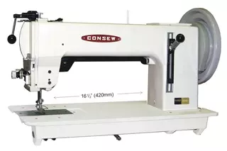 Consew 2040 Extra Heavy Duty Long Arm Single Needle Compound Feed Alternating Presser Feet Lockstitch Industrial Sewing Machine With Table And Servo Motor | GoldStar Tool