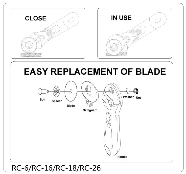 Decorative Edge 45mm Rotary Cutter for Fabric, Paper & CraftsrnThis 45mm rotary cutter has a really nice decorative edge that cuts a perfect curvy wave-like pattern. Great for paper, crafts, and light to medium weight fabrics. Stainless steel blade with warranty.