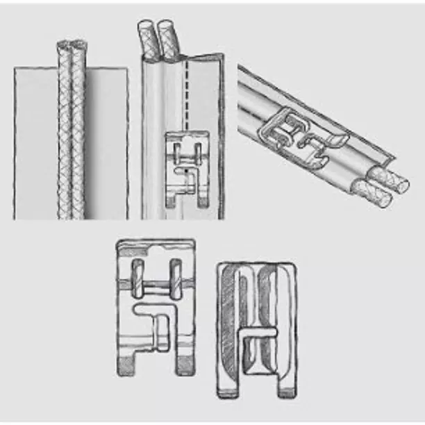 Double Welt Cord Foot-Viking #4126271-45 rnPart Number: 4126271-45rnMake your own covered piping or use pre-purchased. Use this foot to apply welt cording or piping to all your home decor or upholstery projects.rnMACHINE COMPATIBILITY:rnHusqvarna Models: Group 7: Designer SE, Designer I USB, Designer I, Quilt Designer II, Designer II, Quilt Designer, Designer Diamond, Designer Topaz 30, 20, Designer SE, Designer SE Limited Edition, Designer I, II, Quilt Designer, Quilt, Designer II, Sapphire 875Q, 870, 855, 850, 835, 830, Group 6: Platinum 955 E, 950 E, Platinum Plus, Platinum 770, 775, Platinum 750 Quilt, 755 Quilt, Platinum 730, 735, Platinum 715, Rose 600, 605, Iris, Scandinavia 400, 300, 200, Interlude 445, 435, Lily 555,550,545, 540, 535, 530, 500, Freesia 445, 435, 425, 415, 400, 350, Lisa, Angelica, Viva, Victoria, 500, Facette 500/400, Emerald, 203,183, Group 5: Emerald 116, 118, 122, Prelude 340, 360, 350, 370, Scandinavia 100, Daisy 335, 330, 325, 320, 315, 310, Oscar, Sophia, Emma, Lena, Romeo, Juliet, Anna, Sarah, 250, 230, 225/215, 210, 205, Jeans, Hugin,Group 4: Classica 105, 100, 95, 90, Group 3: Optima 630, 620, 610, 190, 185, 180, 150, 120, Group 2: Prisma 990S, 990, 980, 960, 950 S, 950, 945, 940, Group 1: Orchidea 1250, #1, #1+, 1200, 1100, 1090, 1070, 1070 S, 1050, Group Ds: All 2000, 3000, 6000 series, 1010, 1030, 1040rn*3010, *3310, *3610, *5610, *5710, 6570, 6690, 3240