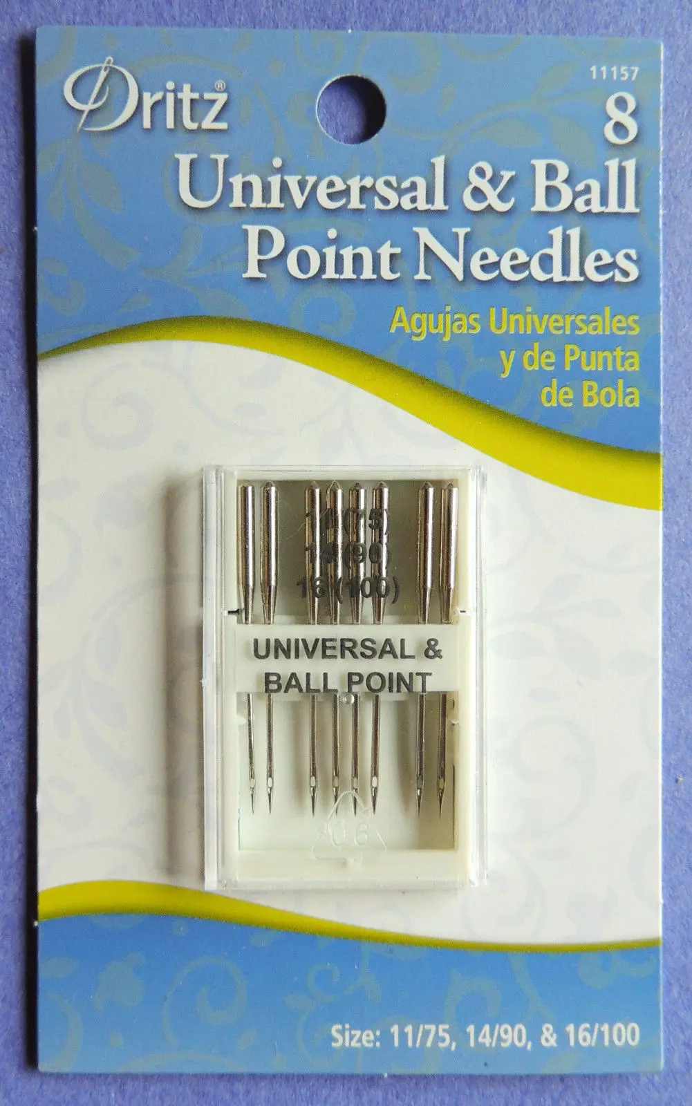Dritz – Universal and Ball Point Needles rnSizes: 11/75, 14/90, 16/100rnUse on Lightweight to heavy-weight fabrics. For all home sewing MachinesrnSold in Pack of 8.