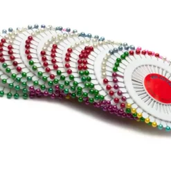 Assorted Color Glass Head Silk PinsrnOur Glass Head Silk Pins are great to use for marking or decorating on your sewing, quilting or crafting project. These pins never snag or leave holes in your fabric. With colored glass heads, the pins are easier to find and you can iron over them. These super fine pins have a .60mm steel shaft and come in a sturdy plastic box with a clear lid.rnAvailable size: 1 1/2″ rnSold in pack of 150.