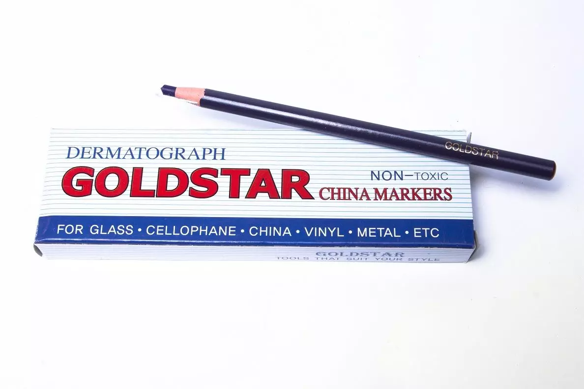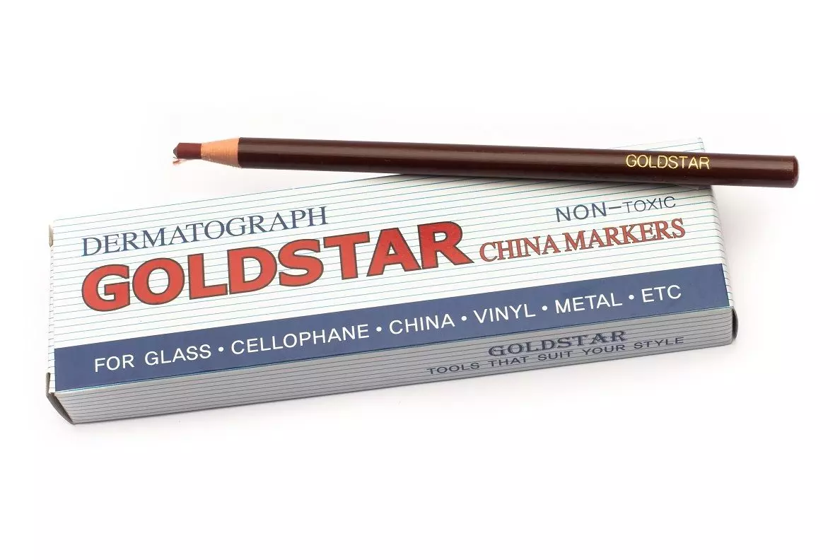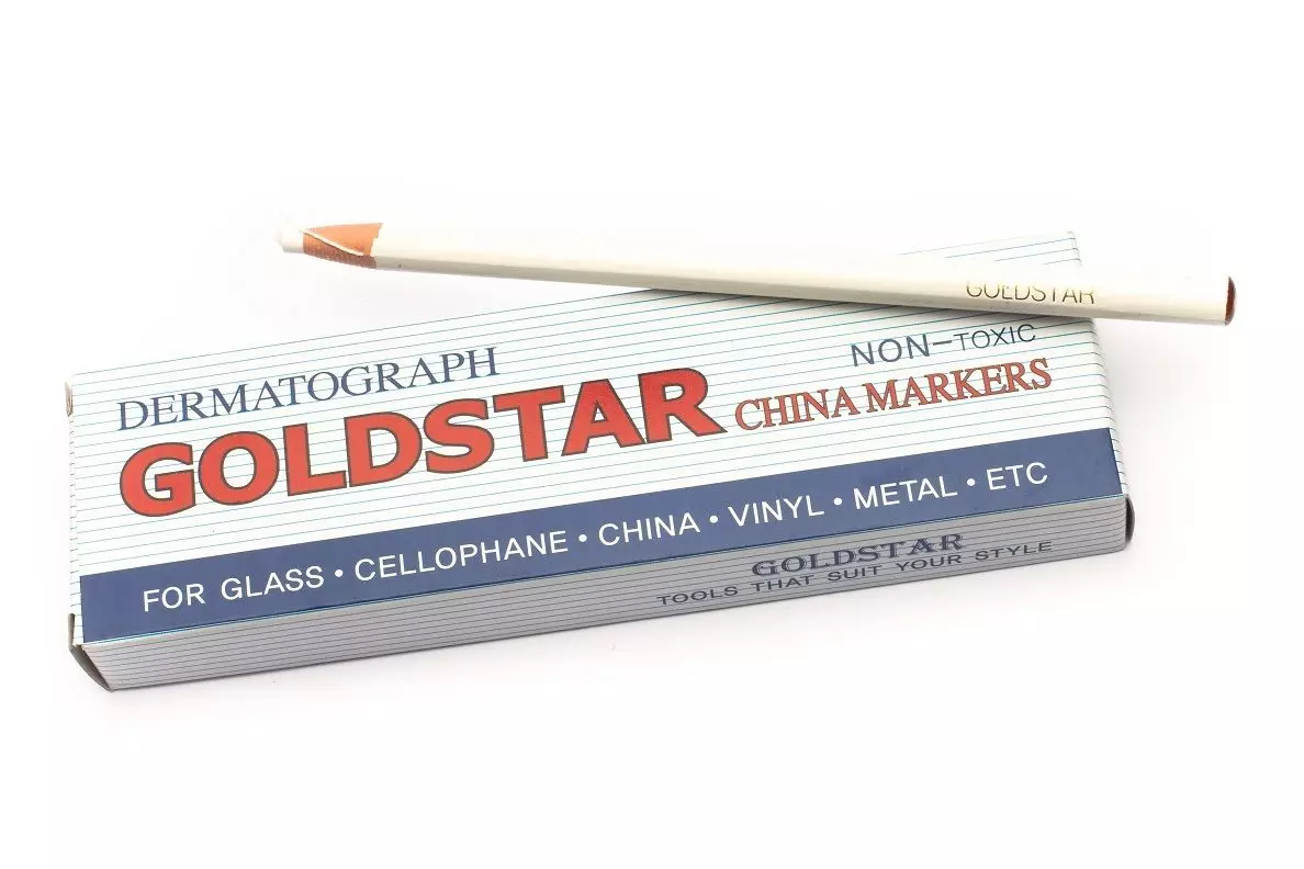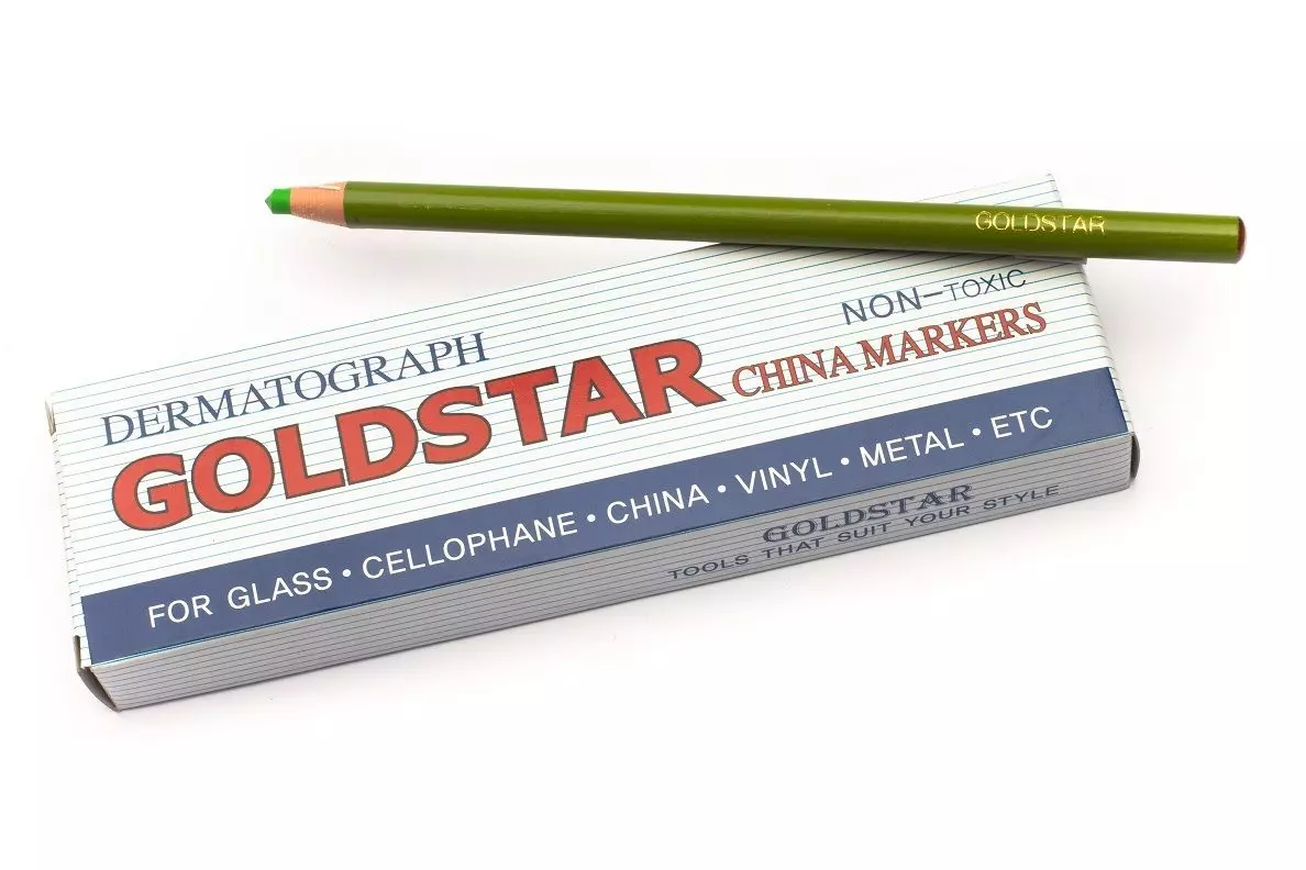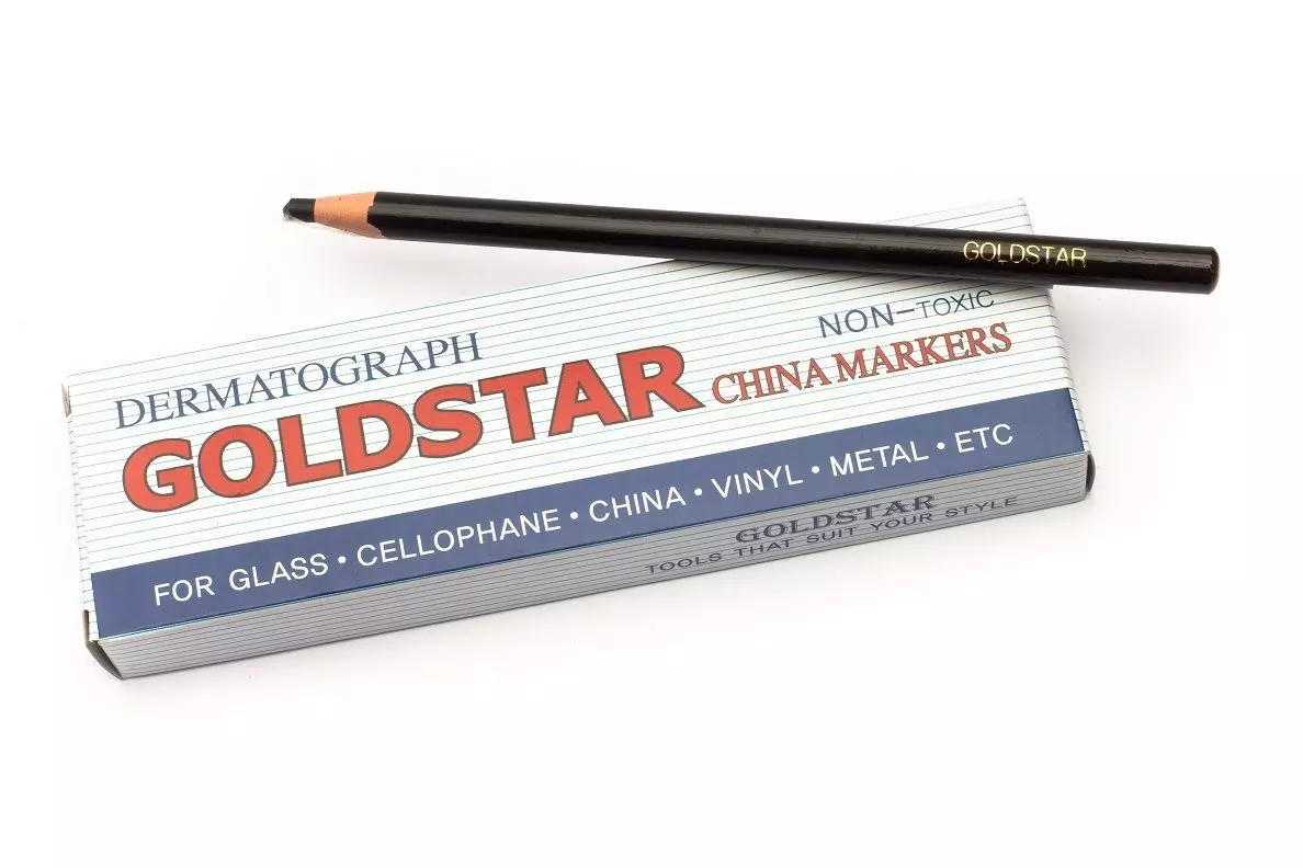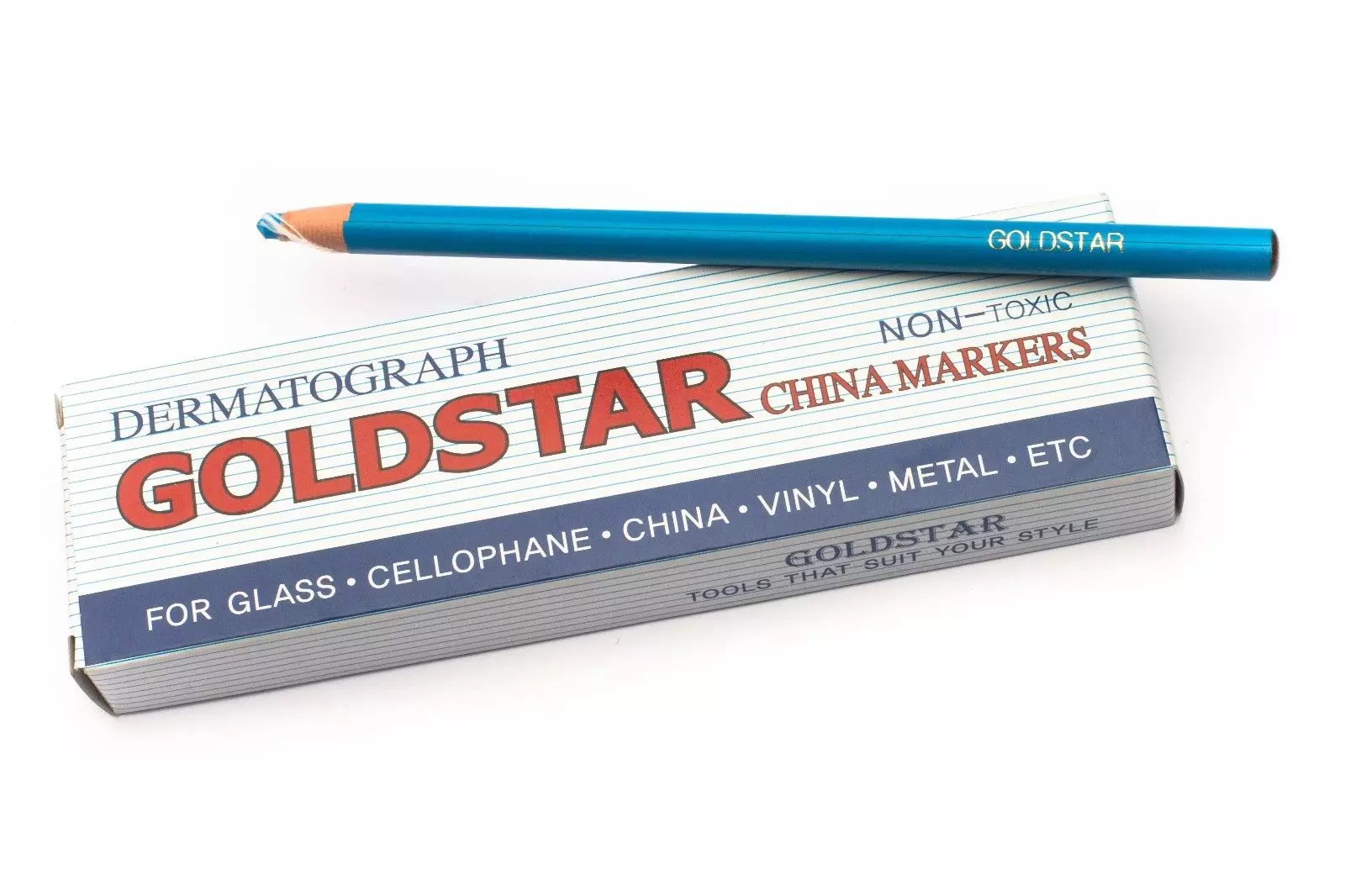 GoldStar China Markers Peel Off Grease Wax PencilThese GoldStar China Markers, also know as “Grease Pencils,” leave opaque markings without skipping on all types of shiny surfaces including glazed pottery, glass, plastic, metal, rubber as well as porous surfaces such as fabric, wood, and paper. Marks are water-resistant and colorfast. Can be easily removed from non-porous finishes.rnUsing the pull string easily exposes the paper wrapped core.rnPacked 12 pcs. per box.