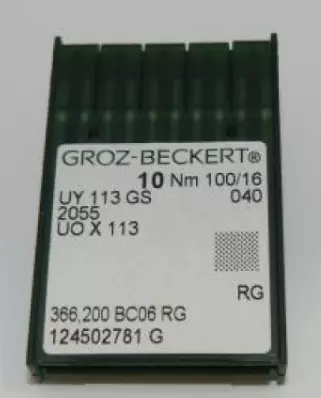 GROZ-BECKERT – UY 113 GS/2055 Chromium Sewing Machine NeedlesrnPoint style: RGPart Number – Needle Size: rn769402 – 60/8 769312 – 65/9750492 – 70/10703752 – 75/11750382 – 80/12769412 – 85/13750312 – 90/14750322 – 100/16750332 – 110/18754792 – 120/19751432 – 125/20756062 – 130/21750642 – 140/22rnCoating: ChromiumLength butt to eye: 366Shank diameter: 200Packing Unit: Sold in packs of 10 and 100rnPOINT STYLErnRound point with small ball pointStandard for chain stitch; for fine, delicate knit fabrics, microfiber, woven fabrics, sewing buttons, embroidery and fine, soft clothing leather (FST 401 and 406)rnApplicationShirts, trousers, various types of garmentsrnOther point designationsSTU, STUB, S BALL, SET RT