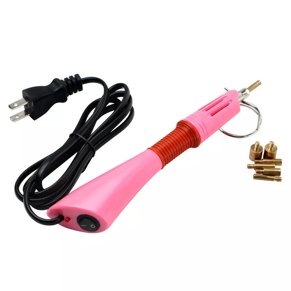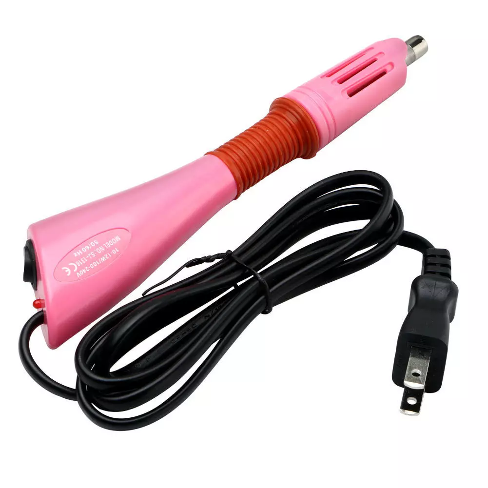 Hot Fix Rhinestone SetterrnThis is a DIY Hot-Fix rhinestone applicator that can add sparkle rhinestones to your items including clothing, purses, cell phones, belts, dolls, scrapbooks and more. It works with those materials need to be able to absorb the adhesive when it’s melted, like Leather, Paper, Card, Wool-Trevira, Cotton, Linen, Wool, Viscose, Tulle, Denim, Lycra, Cotton Jersey, Silk, Synthetics (polyester etc).Hot-fix applicator wand with ON/OFF switch, extra-long 4.6ft electric cord. Easily to apply rhinestones to cotton, denim, etc. 7 Hotfix Tips: 1 x 2mm tip, 1 x 3mm tip, 1 x 4mm tip, 1 x 5mm tip, 1 x 7mm tip, 1 x 9mm flat tip, 1 x hotspot tip