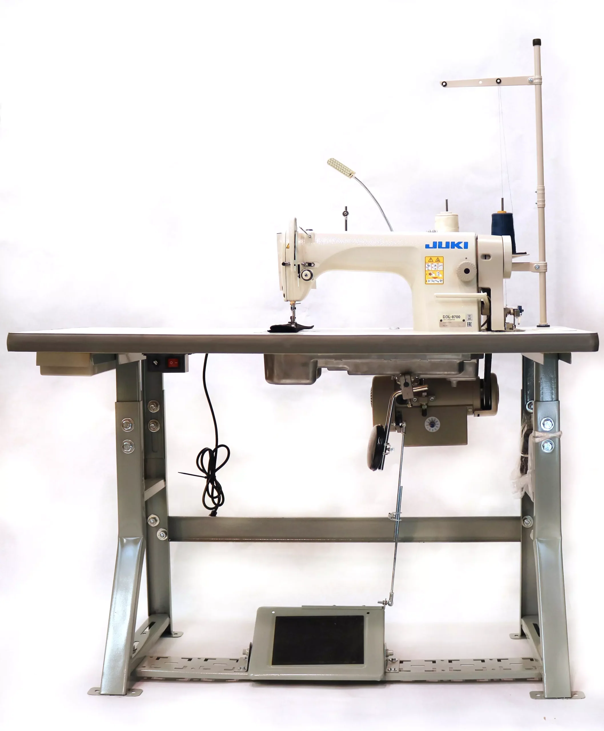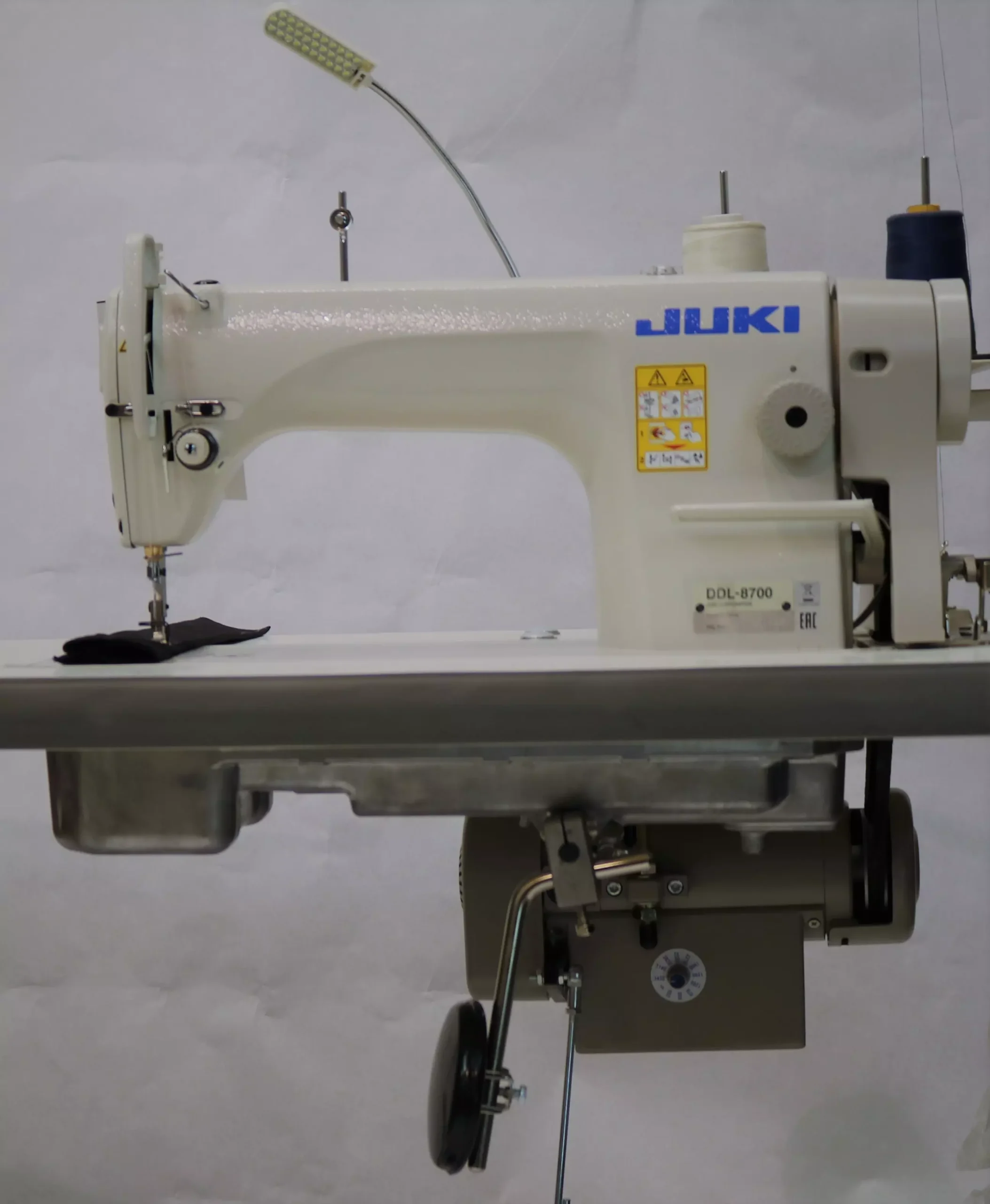 JUKI DDL-8700rnHigh-Speed Single Needle Straight Lockstitch Industrial Sewing Machine Comes With Table, Legs, Servo Motor and LED LamprnAre you a home sewer considering moving up from a domestic sewing machine to something that can handle larger projects like quilts? Or, are you looking for a new sewing machine for your business?rnProfessional shops, design schools, and home sewers interested in a sewing machine that handles straight lockstitching for as much as a half-inch of fabric will appreciate the JUKI DDL-8700. Solidly built, this machine works quickly with consistent stitching that makes anything you sew look professional and well made. rnGet Ready to Fall in Love with Your New DDL 8700rnEven though it’s a high-powered industrial machine, the servo motor makes it much quieter. Smooth, fast, and quiet stitching means you’ll be able to sew longer and get bigger projects completed quickly.rnNeed to put the brakes on that high-speed stitch? Adjust the servo motor for a slower speed anytime. rnThis high-shank machine can also use many of our presser feet that fit. This means you can add on to the machine’s functions and do things like ruffling, gathering, bias, elastic, and zipper installation with a quick change of the presser foot. We carry over 200 presser feet, many of which are high-shank (as well as high-shank adapters for snap-on feet.) rnOnce you become accustomed to using the 8700, you’ll understand why so many other JUKI buyers swear by their machines.rnLove JUKI? Goldstar Tool Has You CoveredrnWe carry several JUKI machines, including the DDL-8700. Ready to move up to one of the world’s best machines? You can order right now from our website. Have questions? Call us at 1-800-868-4419, and we’ll be happy to answer everything for you.