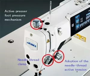JUKI DDL- 9000C-FMS rnSemi-Dry Head Direct-Drive,1-Needle Lockstitch Industrial Sewing Machine Comes With Automatic Thread Trimmer Table Legs, Servo Motor and LED LamprnJUKI DDL- 9000C-FMS digitalizes the machine adjustment used to be handled based on personal hunches and experience. The machine comes with bird’s nest prevention that commits to quality.The newly-developed model totally eliminates bird’s nests at the starting of sewing, which have been a conventionally inevitable factor when using machines with a thread trimmer. The length of thread remaining at the end of sewing is shortened.