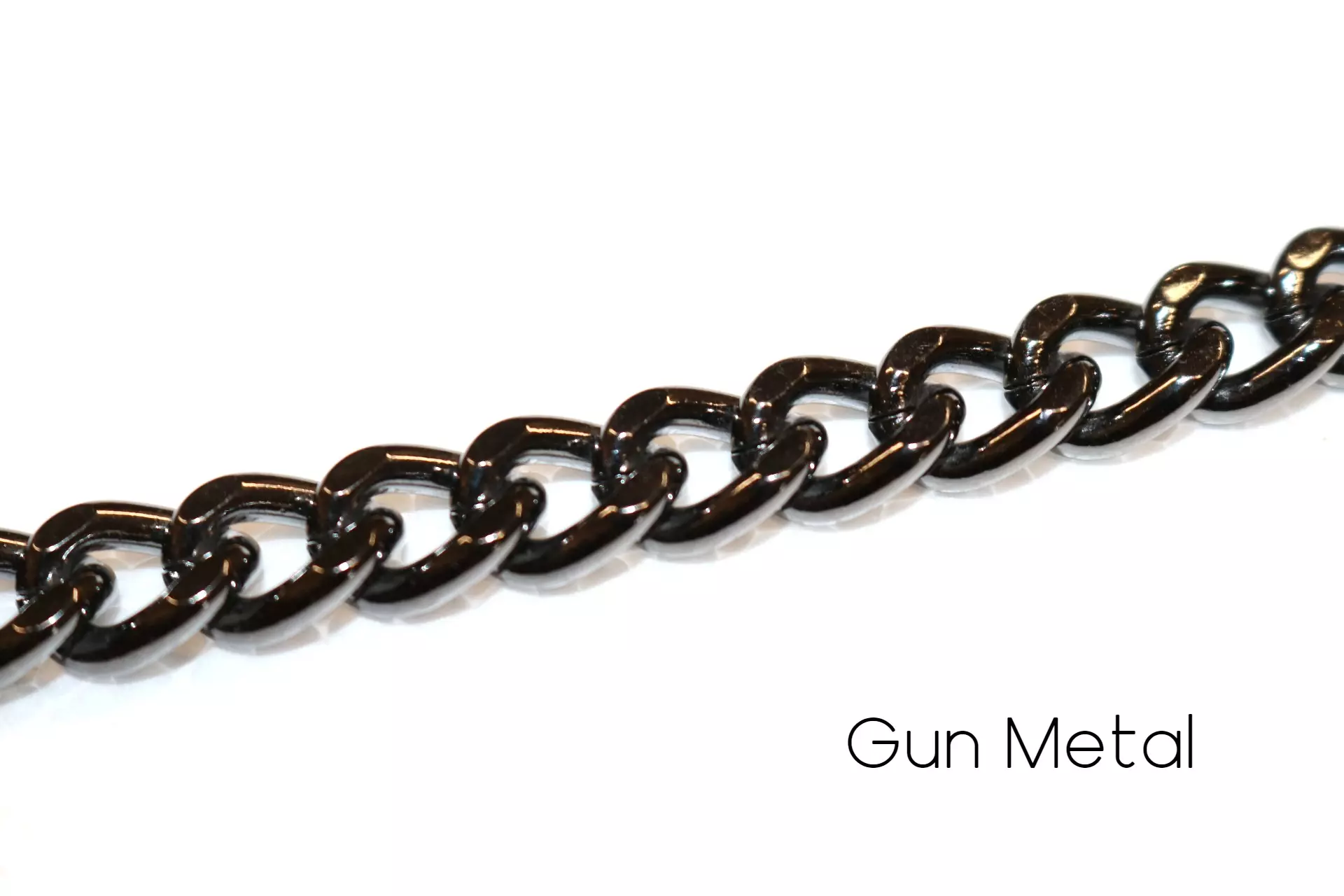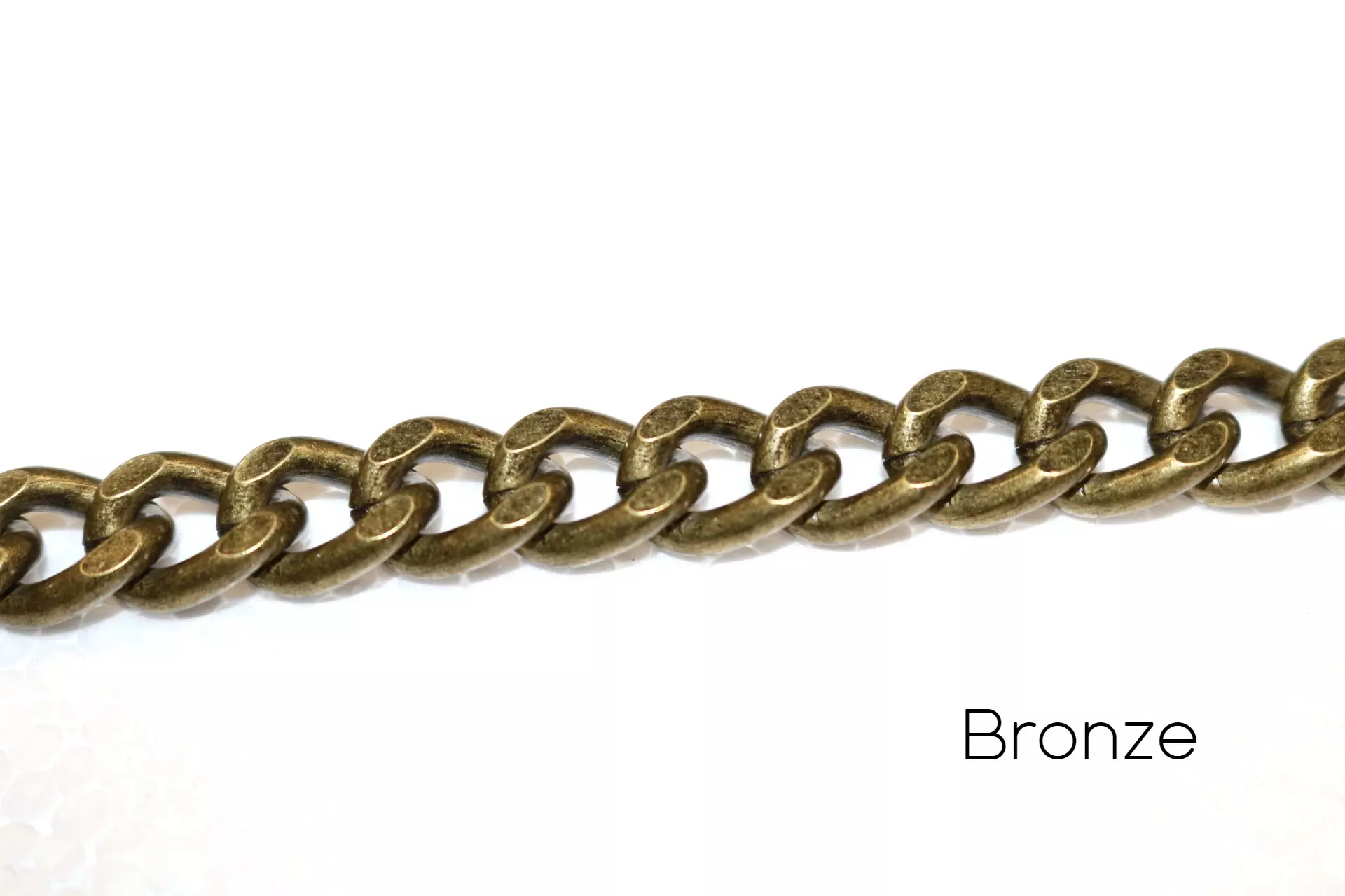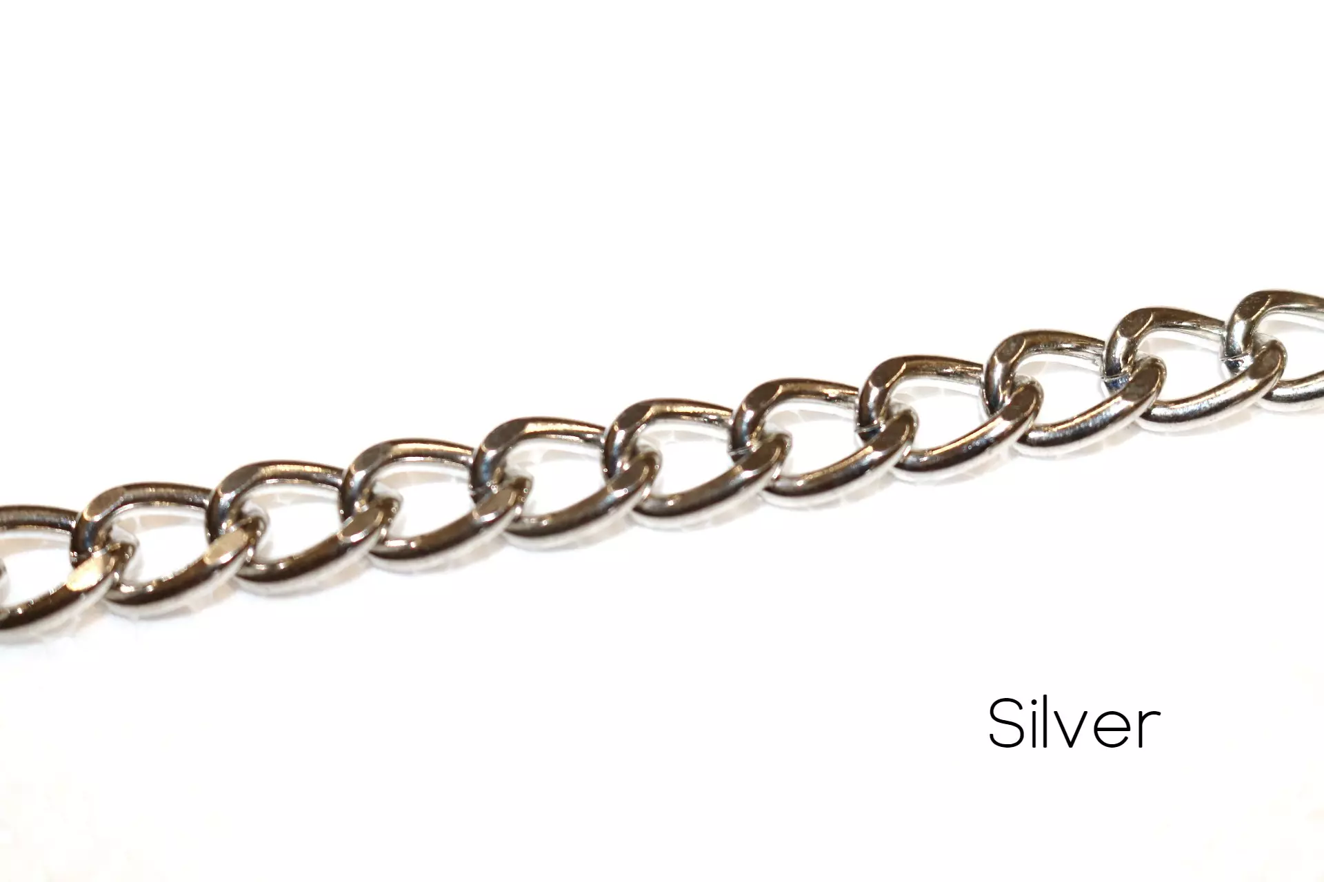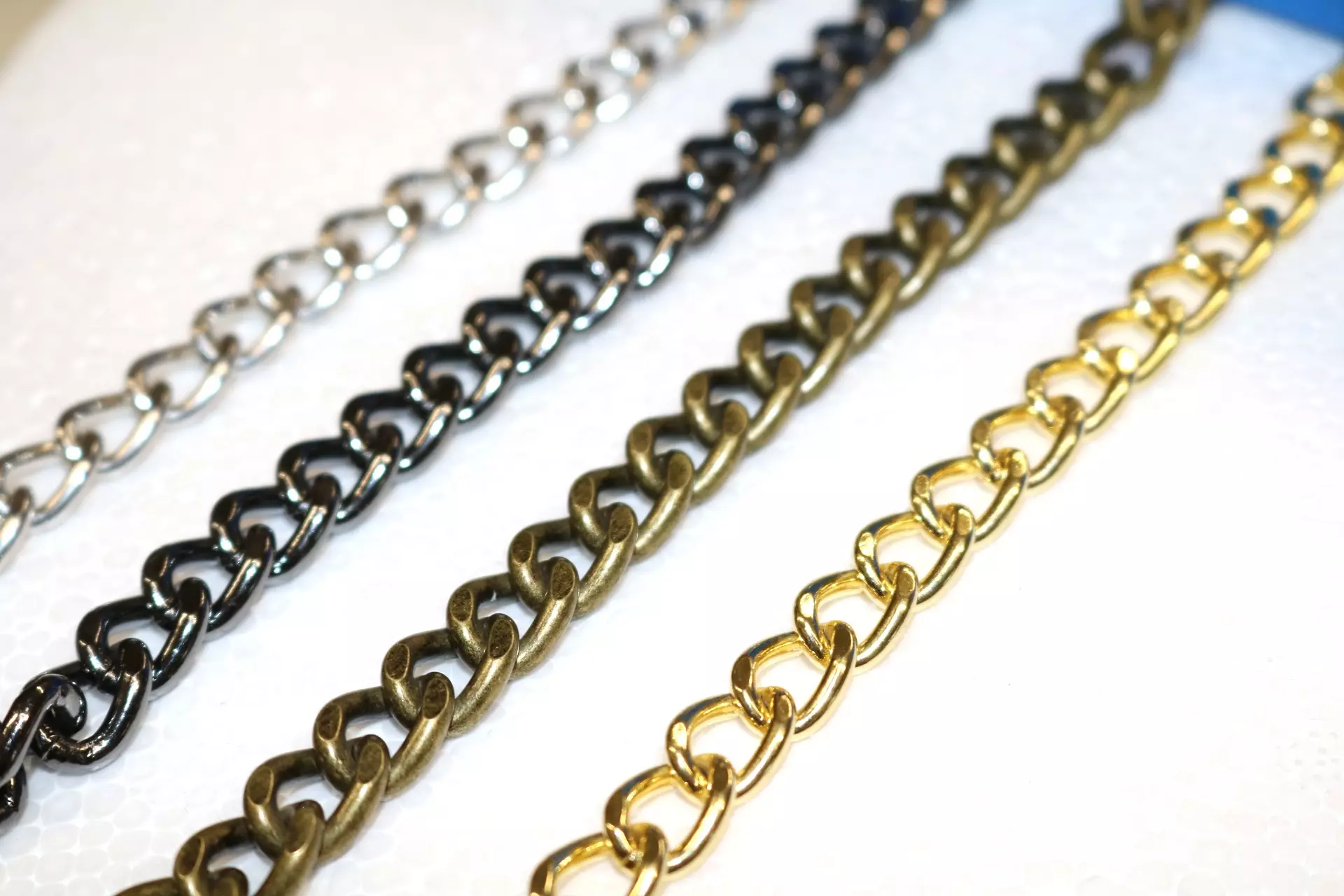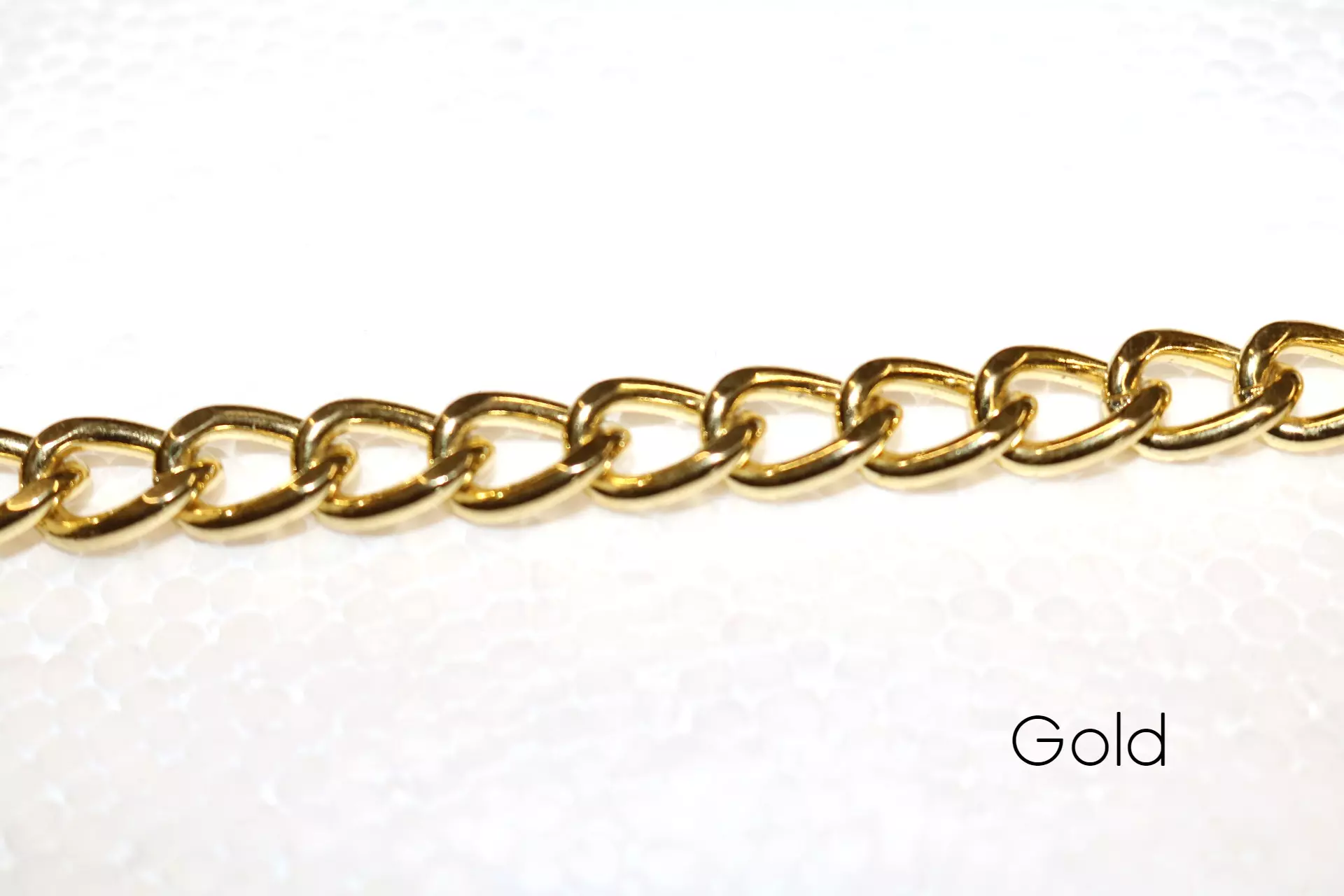 Metal Hand Bag Purse Chain rnHigh quality chain link for hand bags, purses, pet accessories, belts, jewelry and more!rnMultiple plating, sealing glazernChain Width: 7mmMaterial: BrassrnSold by the Foot (12″)