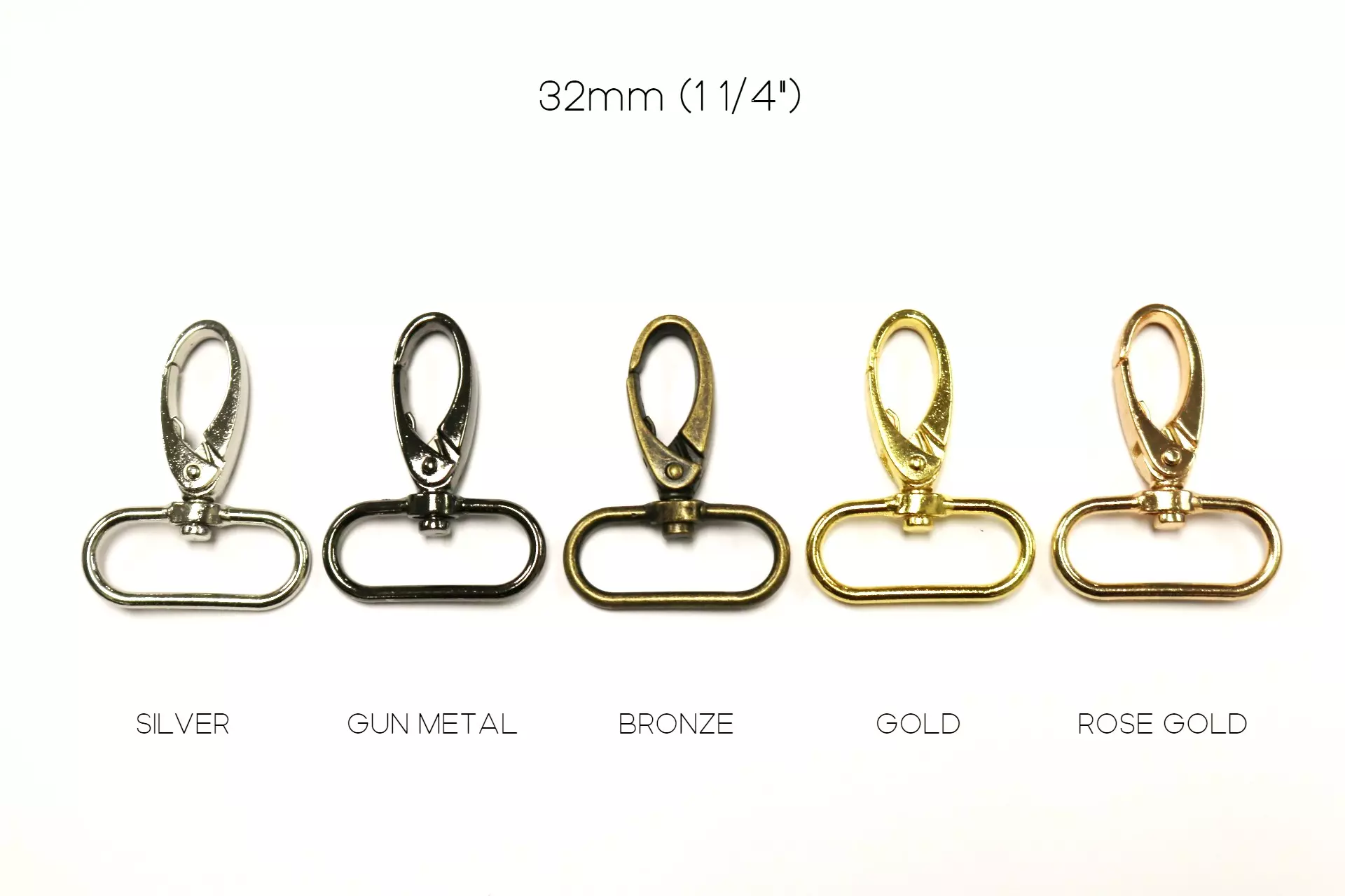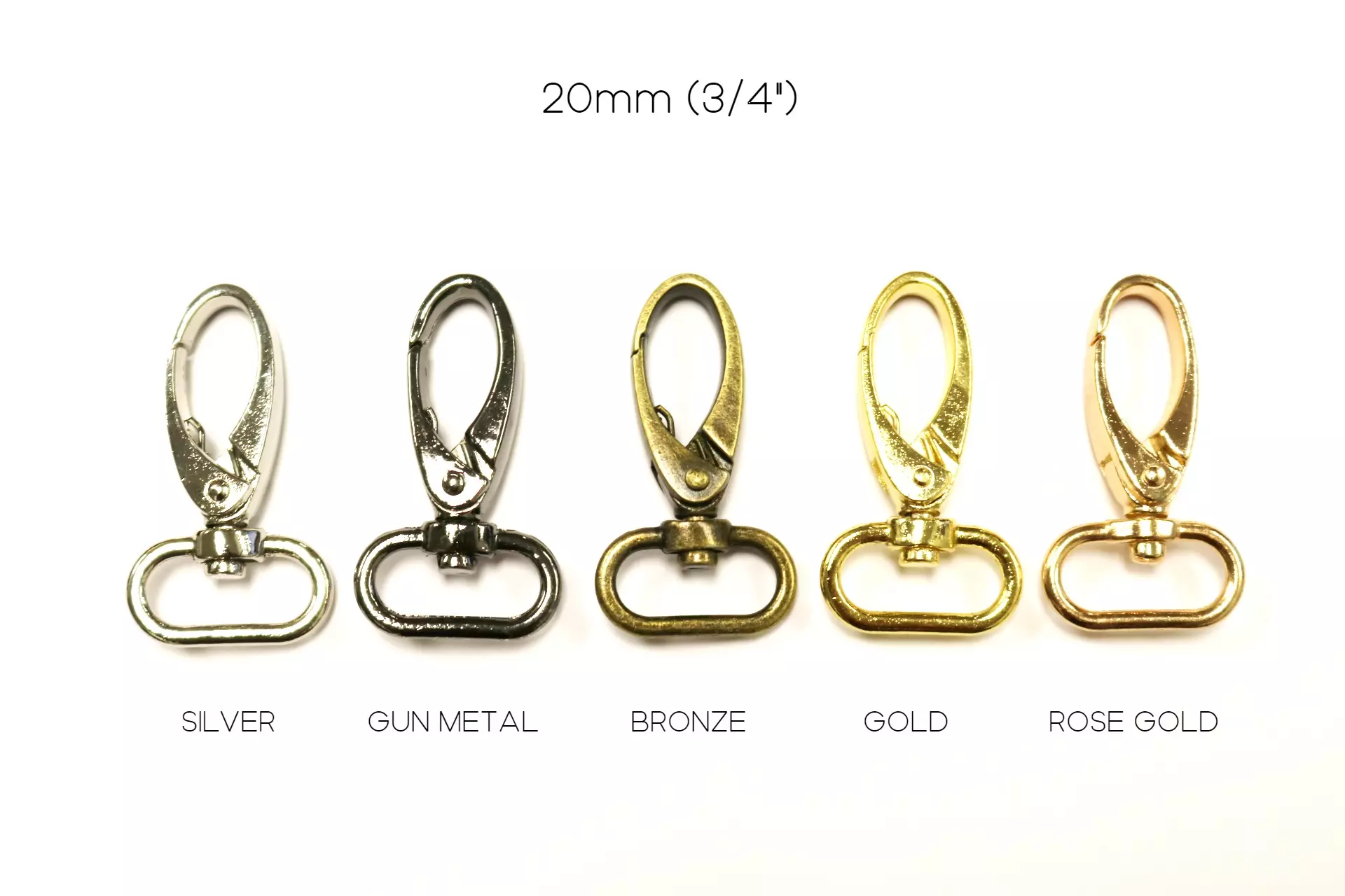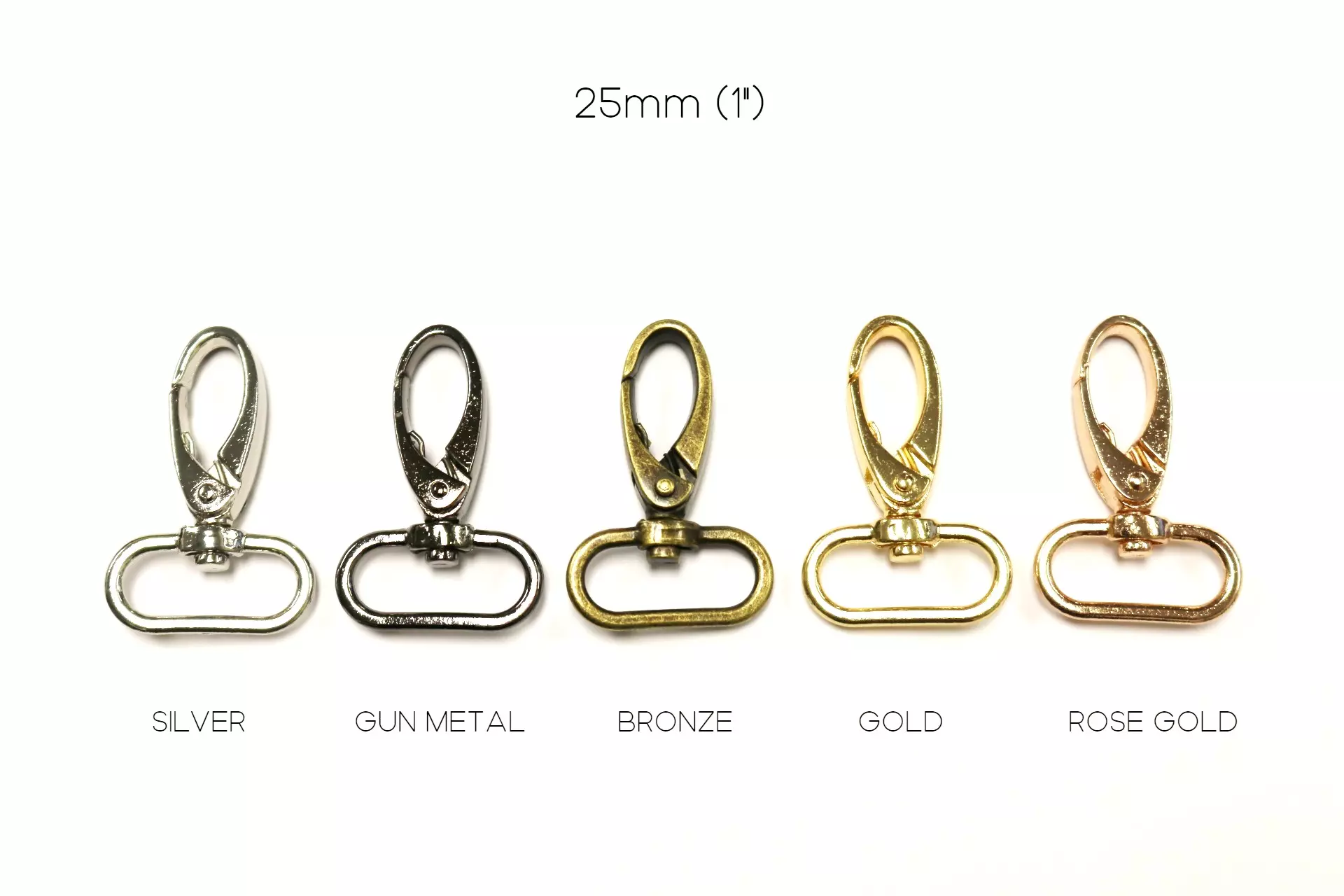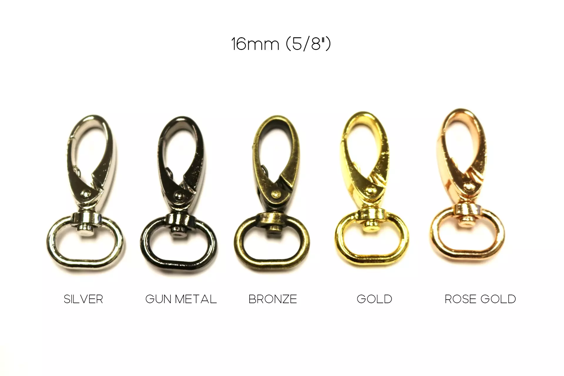 Metal Swivel Snap Hook – Egg ShapedrnThese metal swivel snap hooks can be used on bags, purses, packages, leather, crafts, ribbons, belts, hanging towels for the kitchen and bathroom and other uses. These are sturdy professional grade quality and so easy to install.rnOur special plating process to makes for shiny smooth finished metal swivel snap hooks. Use with our other coordinating hardware. rnSmooth durable strong resistance to corrosion. Great for making purse hardware, paracord bracelets, keychain and more.rnAvailable Colors: Silver, Gold, Rose Gold, Gunmetal, and Bronze.rnMaterial: AlloyrnMEASUREMENTS:rn16mm (5/8″)20mm (3/4″) 25mm (1″) 32mm (1-1/4″) 38mm (1-1/2″)rnSold in single pieces.