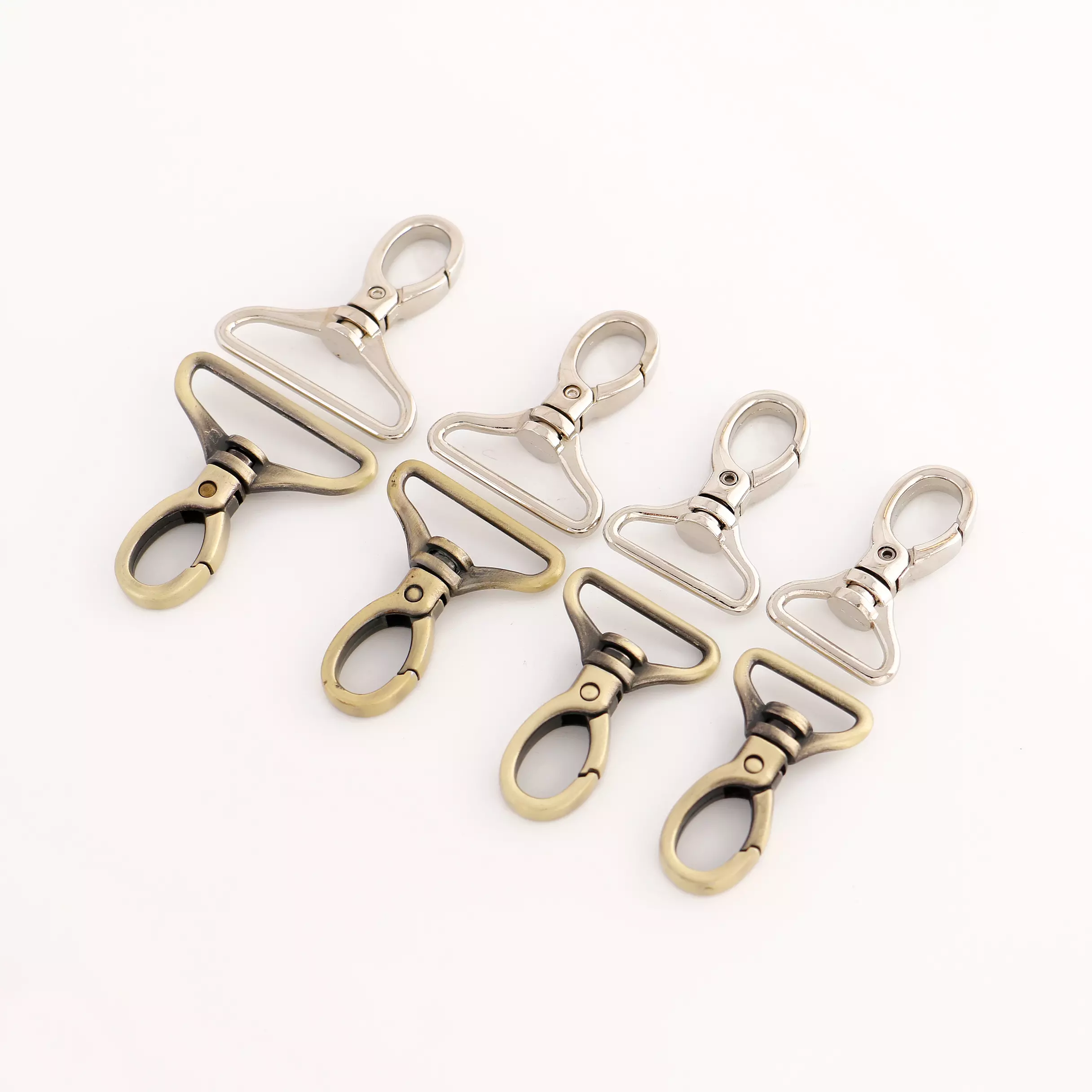 Metal Swivel Snap Hook – Push GaternThese brass push snap hooks can be used on bags, purses, packages, leather, crafts, ribbons, belts, hanging towels for the kitchen and bathroom and other uses. These are sturdy professional grade quality and so easy to install.rnOur special plating process makes for shiny smooth finished pushed gate snaps. Use with our other coordinating hardware. rnSmooth durable strong resistance to corrosion. Great for making purse hardware, paracord bracelets, keychain and more.rnAvailable in Silver and Bronze.rnMEASUREMENTS:rn20mm 3/4″25mm 1″30mm 1-3/16″38mm 1-1/2″rnSold in single pieces.