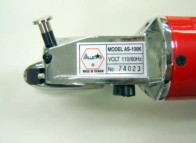 MINI Electric Rotary Cutter (2″) with Long HandlernrntOur smallest heavy duty electric rotary cutter, the Allstar AS-100LH works just like the original version except it has an integrated 24″ handle designed to be as easy as possible for the operator who needs to cut a lot of fabric or cuts on wide tables. It slices through several plies of fabric, up to 3/8″ thick. Due to it’s small size, it’s the best option for cutting intricate patterns and curves without a snag. It comes with a built-in push-button sharpener and safety finger guard.rnrntShipped with instructions and a parts diagram, spare blade, motor brushes and motor coupling; squeeze type switch with comfortable grip; 110 volt 50-60 hz.motor; built-in stone blade sharpener; adjustable blade guard; Blade is 48mm (approx 2″) octagonal.