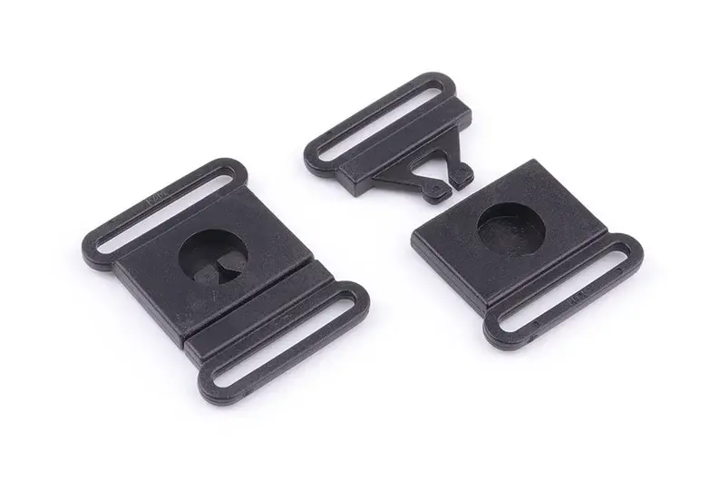 Safety Breakaway Center Release BucklernThese safety buckles release from a single button on the front-facing surface rather than two release points on the sides of the standard side-release buckles. Use these breakaway buckles when a solid hold or stitch could prove to be dangerous. For example, they are commonly used on animal collars, lanyards, and children’s items, allowing the wearer to break free in an emergency. Made from premium materials, have quality construction, and are built to last. rnChoose from 10mm, 15mm, 20mm, or 25mm.rnSold in Packs of 100 or 1000