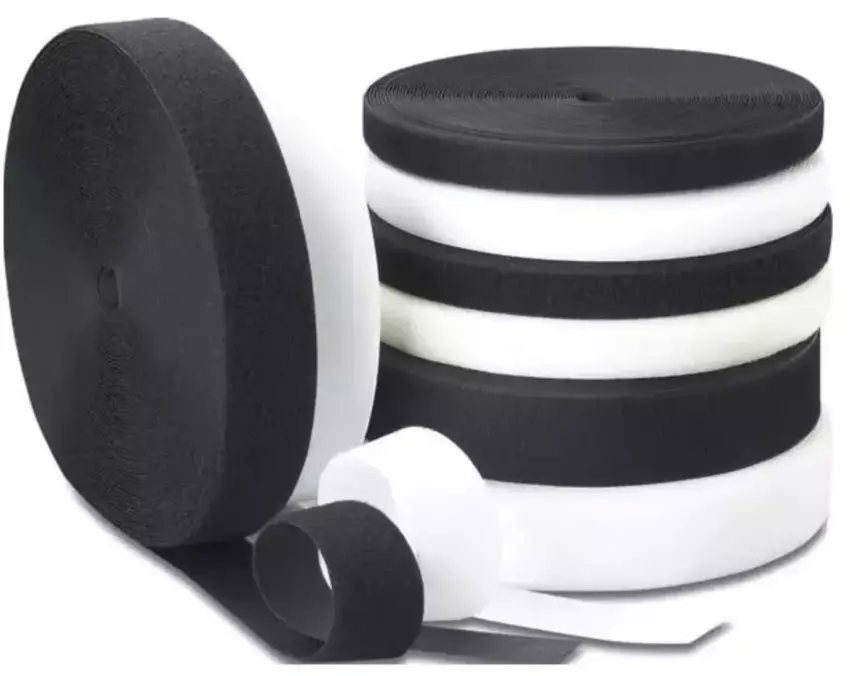 Sew-On Hook and Loop – Black and WhiternThe hook and loop are used to fasten or attach things. It is soft and comfortable but durable, washable, and reusable. To clarify, the “hook” is the rough side. The “loop” is the soft side.rnAvailable in Black and White.rnAVAILABLE SIZES:rn5/8″3/4″1″1 1/2″ (38mm)2″3″rnSold in 10 and 27-yard rolls.