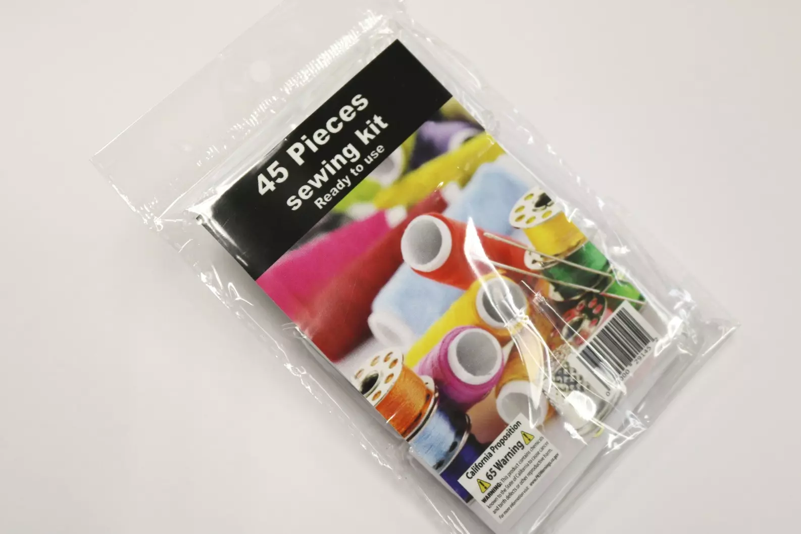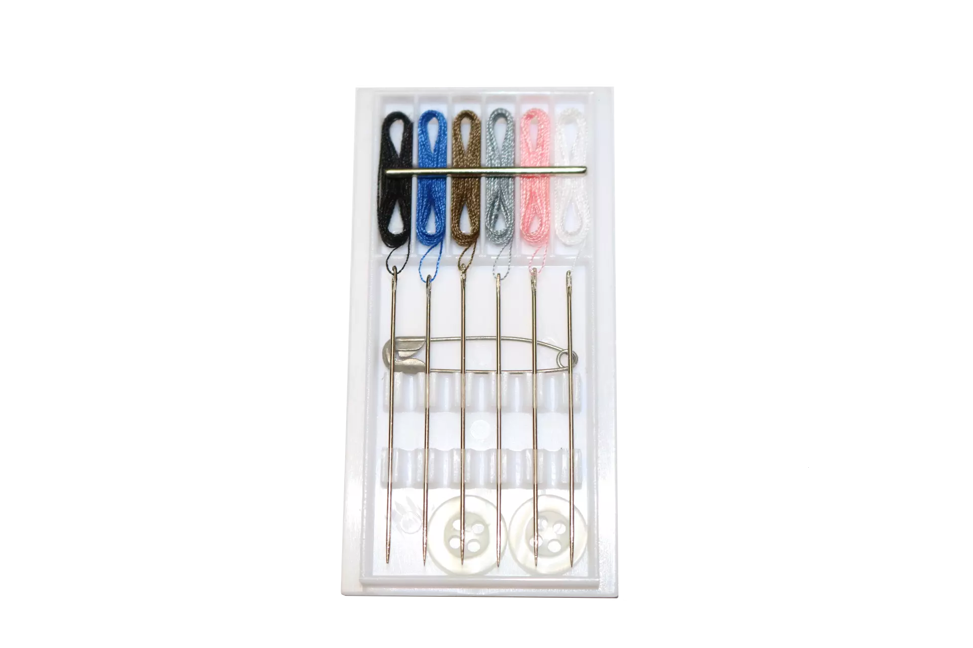 Sewing Kit – 3 Pack (45 pieces total)rnMiniature sewing kit for on-the-go repair and mending. Fits perfectly into small pockets, easy to transport in a sturdy plastic case. rnrnWhat’s Included in each pack (3 packs):6 Needles with 6 different color threads2 Replacement Buttons1 Safety Pin