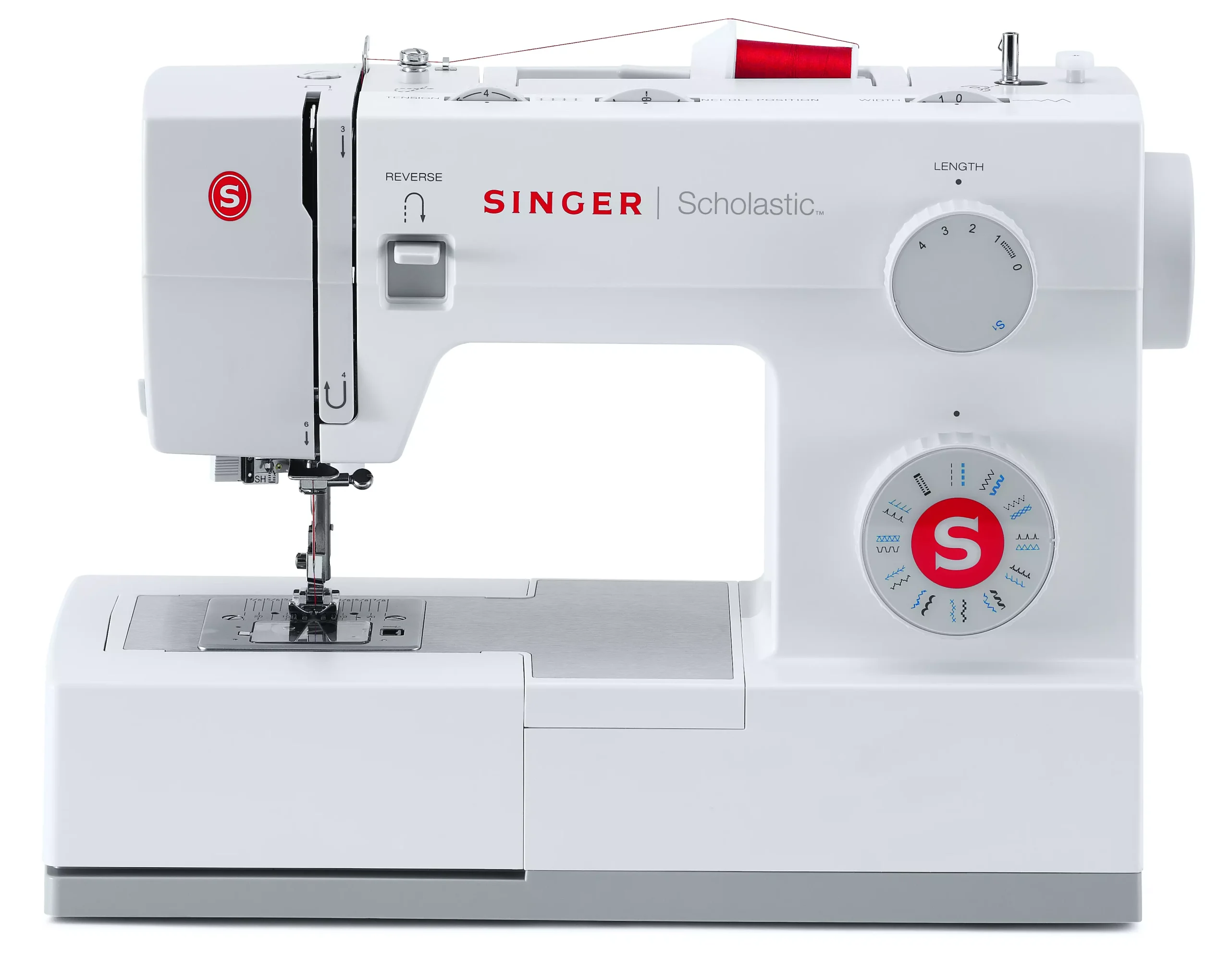Singer 5523 Scholastic Heavy Duty Sewing MachinernThe SINGER SCHOLASTIC sewing machine is a true workhorse. With a heavy duty metal interior frame, stainless steel bedplate, extra-high sewing speed and powerful motor, this machine can sew through just about anything you throw at it. Convenience features including an automatic needle threader, top drop-in bobbin, fully automatic 1-step buttonhole and drop feed for free motion sewing adds a new dimension of ease to heavy duty sewing.