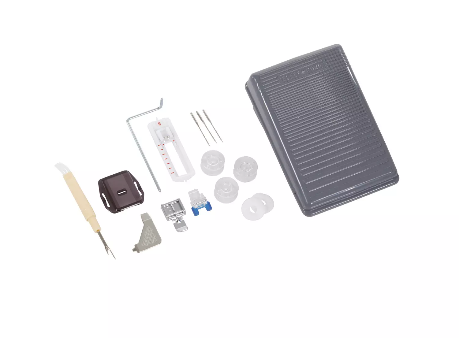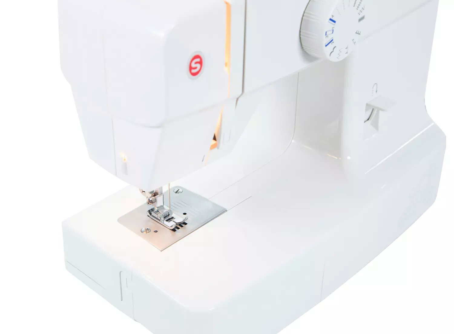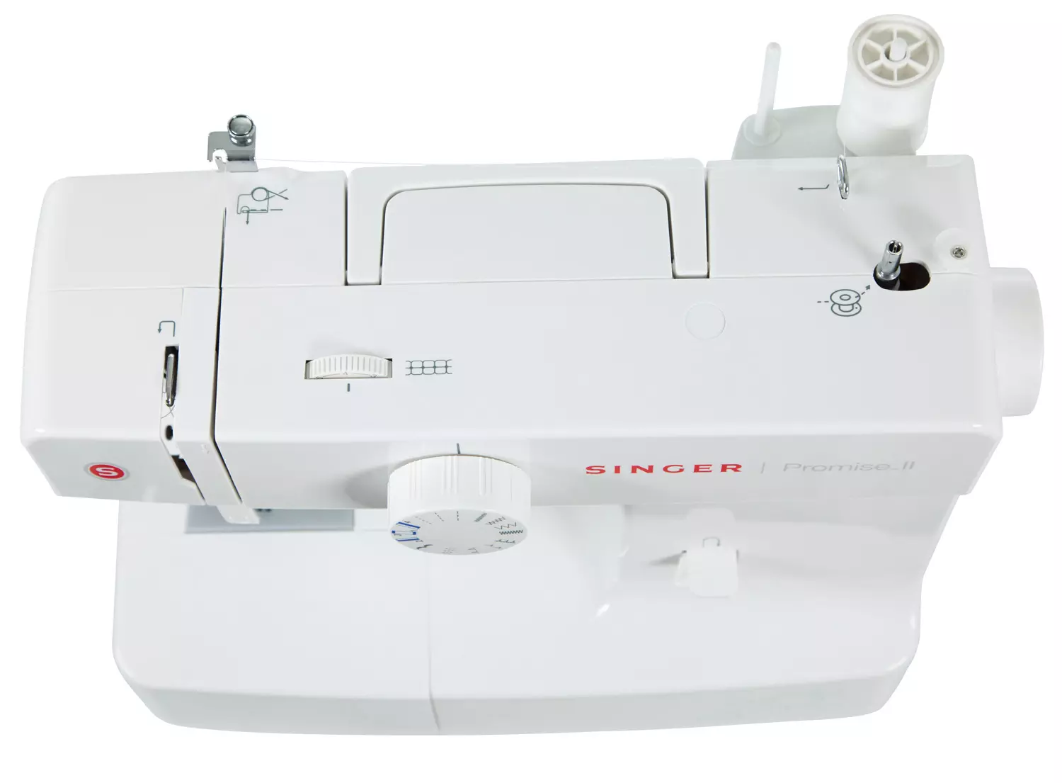 Singer Promise™ II 1512 Sewing MachinernAll the essential features you need to get off to a great start! Online Owner’s Class videos for assistance. For your convenience, your machine will arrive pre-threaded. Accessories included are located in the storage area at the front of your machine.rnThe Promise 1512 sewing machine has 14 basic stitches from which to choose, selected by the simple turn of a dial. Because the stitch length and stitch width are preset, there’s no guesswork, making this a great machine for a hobbyist or even a beginner.rnChoose a straight stitch for basic sewing, sew a simple applique with a zigzag stitch, fix a hem with the blind hem stitch, or sew a decorative scallop stitch to embellish almost anything.rnThe Four-Step Buttonhole feature allows you to add buttonholes in four easy steps on things like pillows, children’s clothing, fashions and more. Slide off the removable storage compartment to expose the Free Arm for hemming trousers and sleeves or for sewing other small projects.