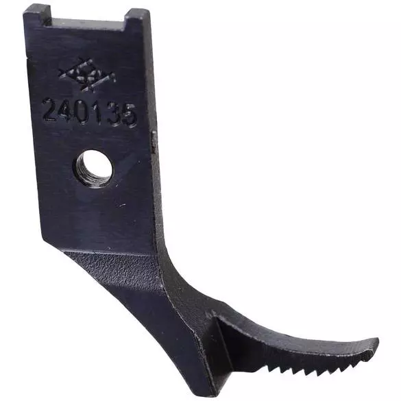 Walking Foot (Outside) – Singer #240135rnPart Number: 240135Alternate Part Number: 240158SSPrnThis walking foot has a toe on the left side.rnTo be used with Walking Foot (Inside) Singer #240158Inside walking foot sold separately.MACHINE COMPATIBILITY:rnrnrnArtisan Models: 4400RB, 618-1Brother Models: B837Chandler Models: 406RBConsew Models: 206RB, 225, 226, 226R, 277JUKI Models: DNU-1541, LU-562, LU-563, LU-1114, LU1508, LU-1510, LU-1560Mercury Models: 280LMitsubishi Models: DU-100, DU-105, LU2-400, LU2-401Singer Models: 111G, 111W, 111W153, 111W155, 153K101, 153W101, 153W103, 168W, 211G, 211U, 211WTacsew Models: T111-155rnrnPresser Foot Shank Type: IndustrialPresser Foot Type: Walking Foot (Even Feed) Foot