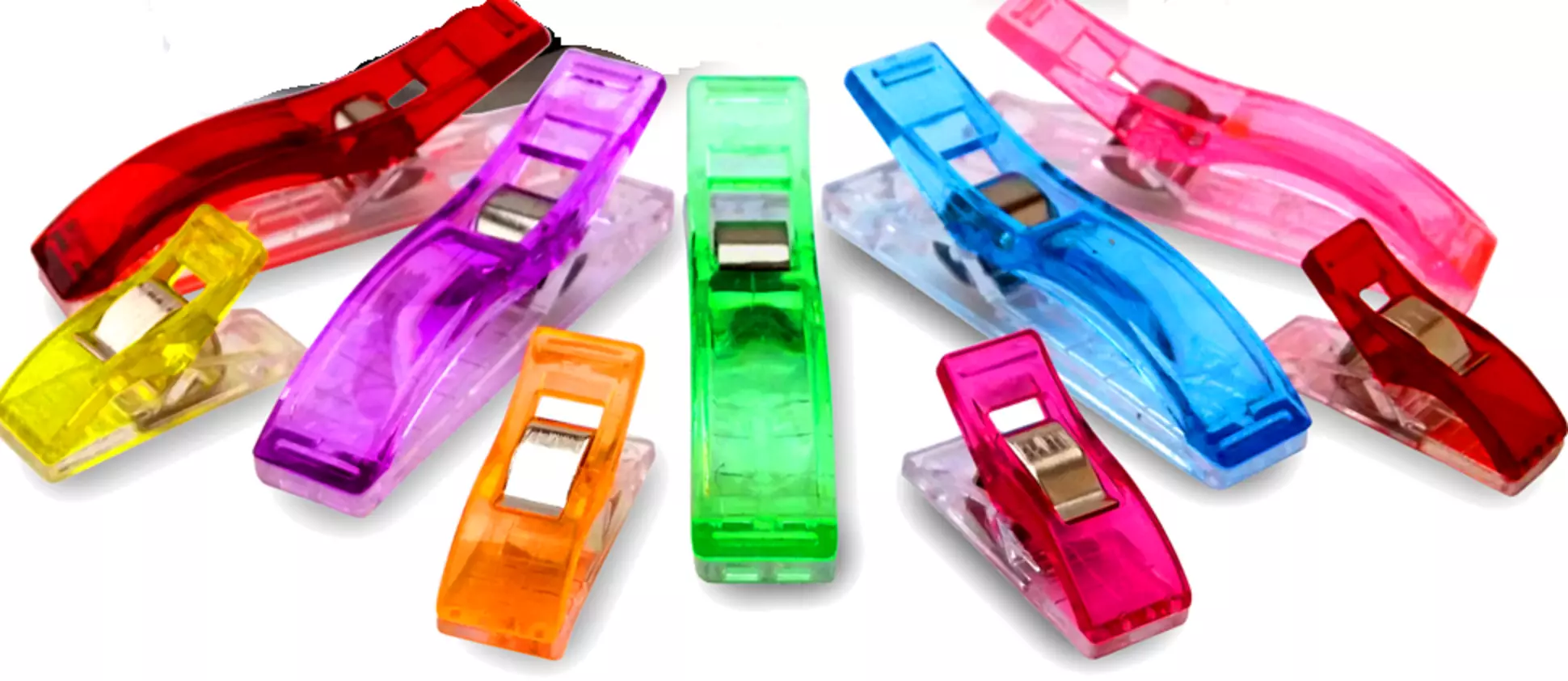 Wonder / Craft ClipsrnSTILL USING THOSE OLD PINS? Tired of PRICKING your fingers? Want to NEVER put a hole in your material again?rnNever struggle with your fabrics to make that perfect seam again!rnEffortless Precision – The clips have a smooth flat bottom, so you can hold your materials in place, even around curves, as you sew all the way up to the presser foot!Extreme Accuracy – Line up your materials to the exact same distance with 3 built-in seam allowance markings. They measure 3/16″, 1/4″ & 3/8″ (5mm, 7mm, & 10mm)Protects Materials – Never leave a permanent hole in your precious fabrics again! These clips make poking your materials (and fingers!) a thing of the pastAmazing Capacity – Opens wide and is made with a b metal spring that firmly clamps multiple layers of fabric without causing damage or warpingPerfect Match – The variety of vibrant colors lets you choose the clip that will stand out the most against any materialTeach Children – The clips are much safer to work with than pins. Enjoy the time teaching loved ones, without the worries of sharp pinsAnytime, Anywhere – Keep all your clips safe at all times with the secure screw on lid so you don’t lose a single clip, perfect for crafters on the gornFrom beginner to professional, these clips are A MUST HAVE!rnAVAILABLE SIZES:Small 40 ClipsSmall 150 ClipsMedium 20 ClipsMedium 100 ClipsLarge 20 Clips Large 90 ClipsJumbo 8 ClipsJumbo 30 Clips